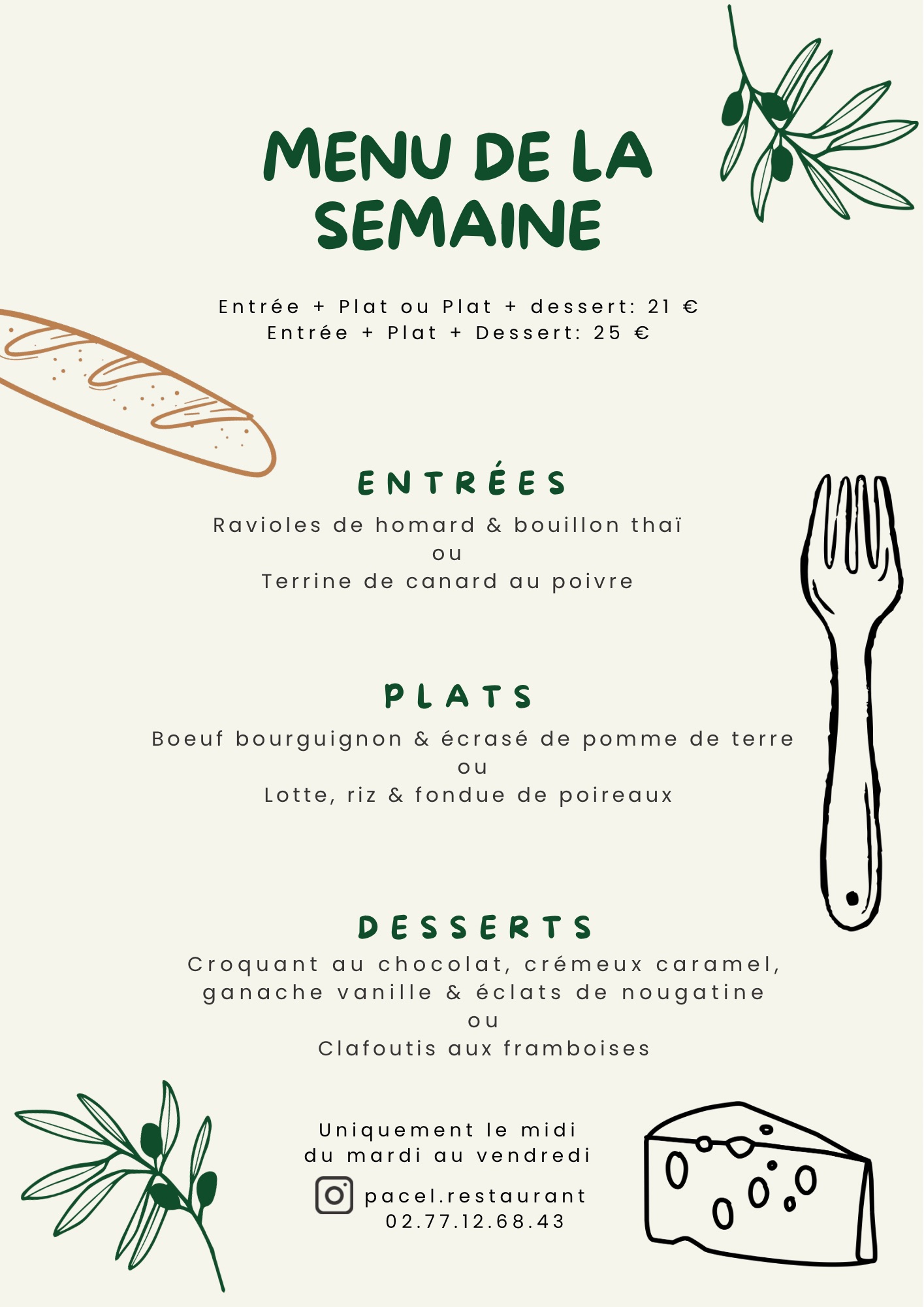 Notre nouveau menu de la semaine   !